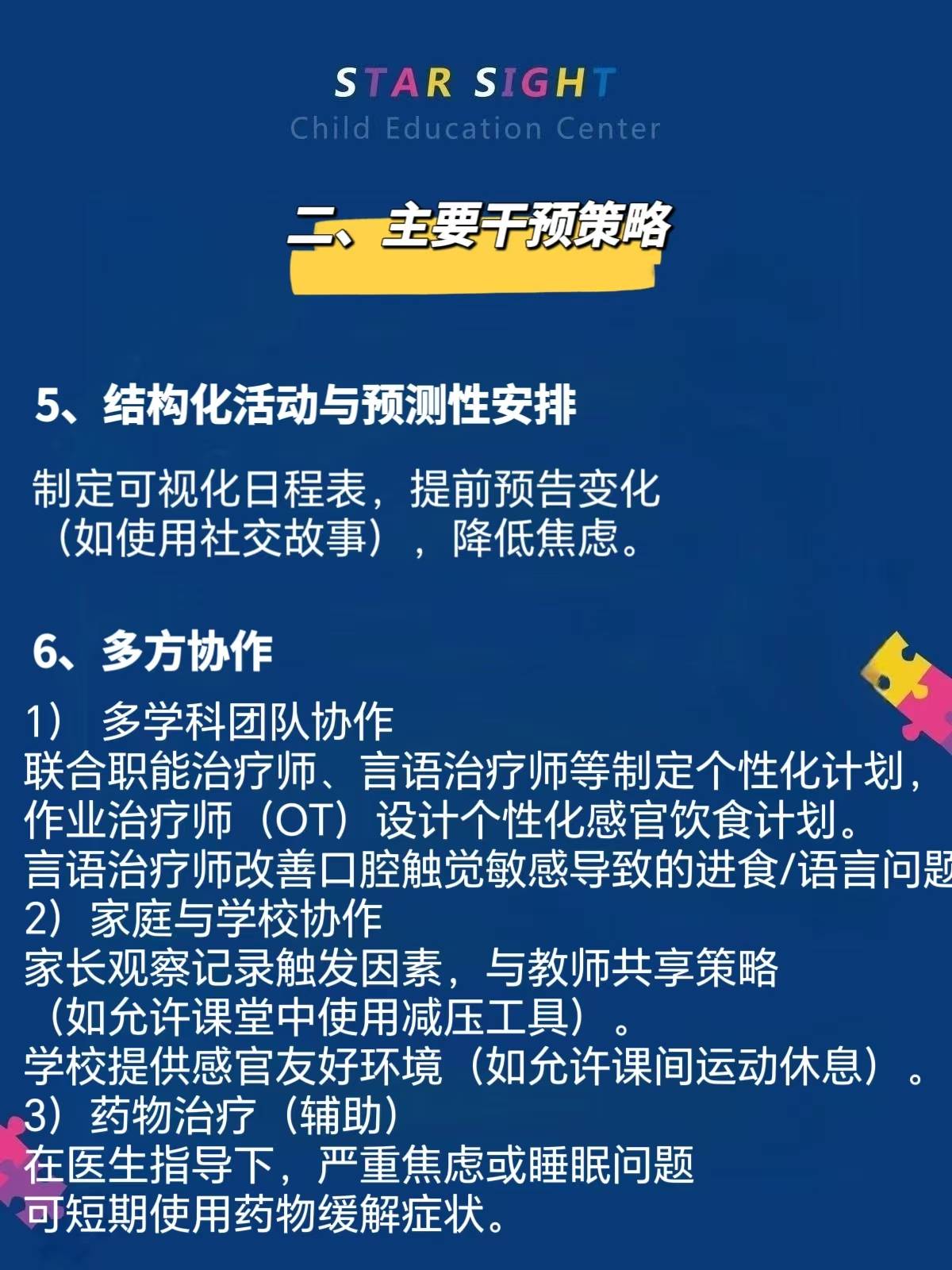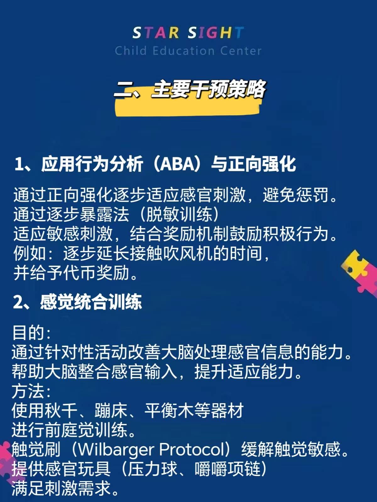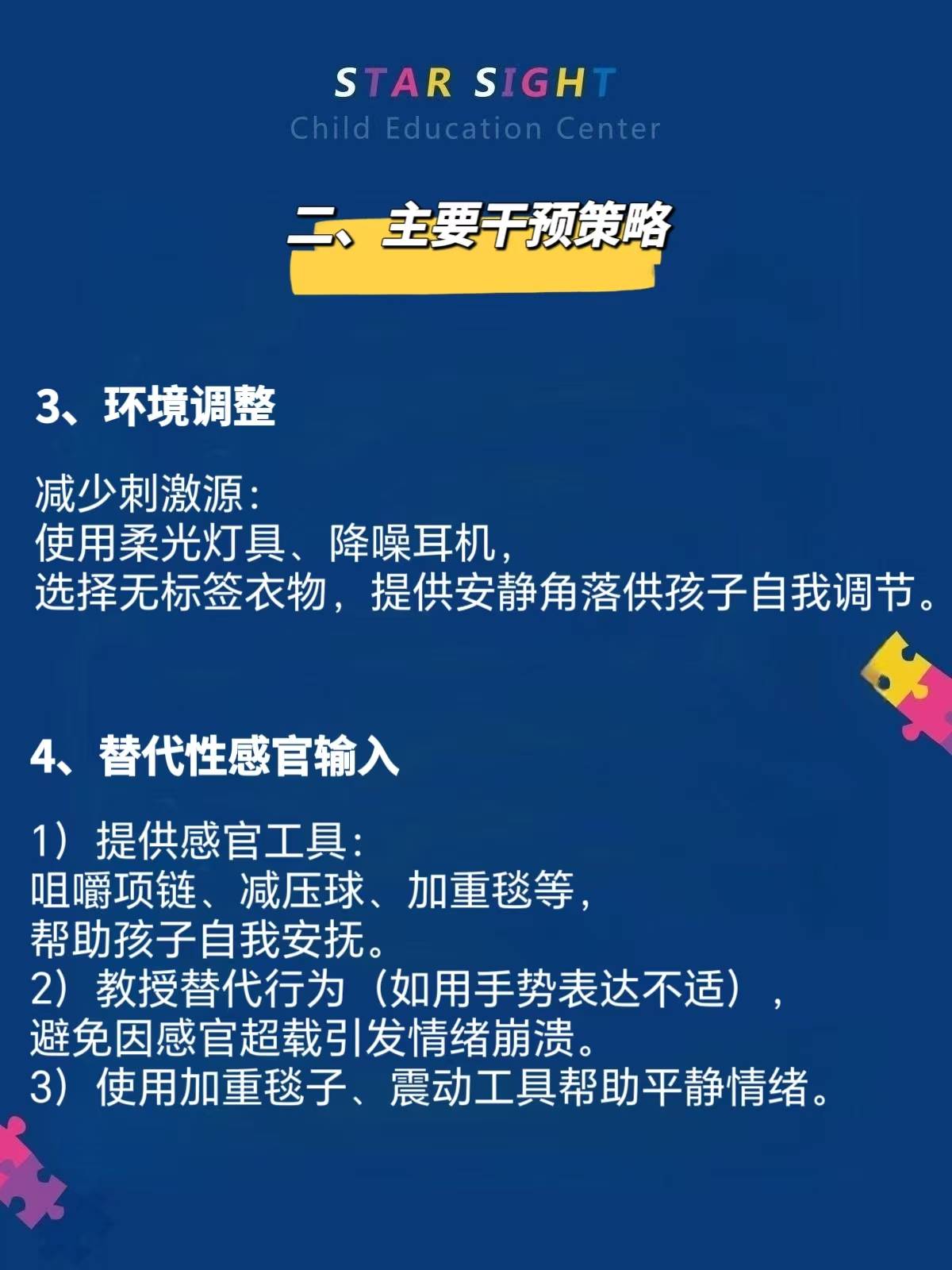 自闭症儿童的感官失调(感觉处理异常)是常见特征之一,可能表现为对感官刺激的过度敏感(如抗拒某些声音或触觉)或低敏感(如对疼痛反应迟钝),可能影响情绪、行为和生活质量。以下是其具体表现及干预策略的总结。