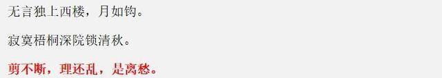这首《相见欢》称得上宋词婉约派的“开山之作”。词牌名为“相见欢”,写的却是离别愁绪,强烈的反差艺术,把那种亡国君被迫离开故国、沦为阶下囚的锥心之痛写得淋漓尽致。“剪不断,理还乱,是离愁,别是一般滋味在心头”乃千古名句。