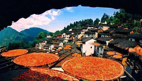 婺源位于赣浙皖的三省交界处,在秋天这个收获的季节,虽然你看不到油菜花,但是这里的丰收景色同样醉人,不管是田里的谷子,还是枝头的果子,都让人感到满足。