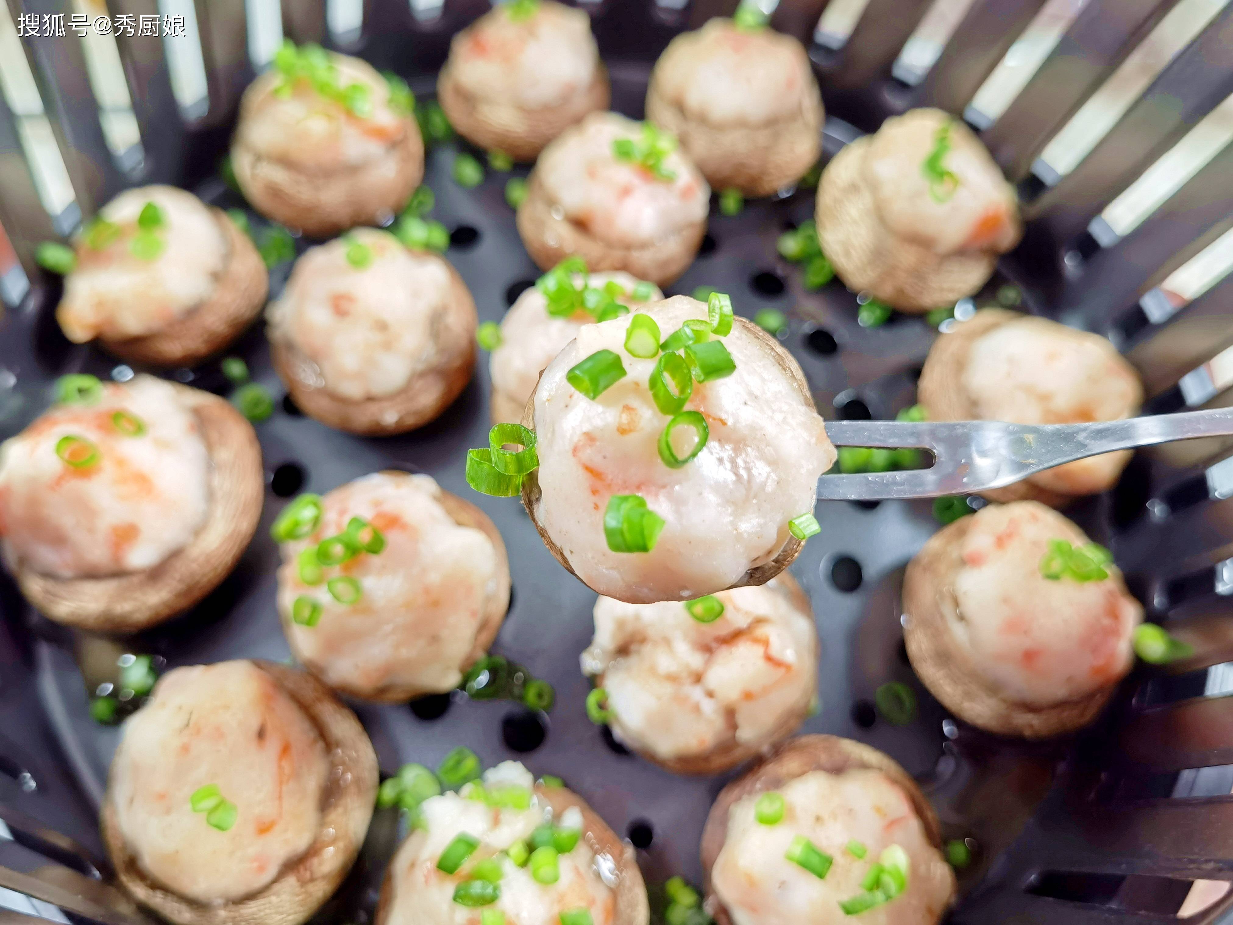 4. 空气炸锅/烤箱版:酿好的口蘑放入空气炸锅或烤箱,180度烤12-15分钟,至虾肉变红熟透即可。清蒸版:将酿好的口蘑放入盘中,水开后上锅蒸8-10分钟即可。出锅后可淋上少许蒸鱼豉油或撒上葱花点缀。