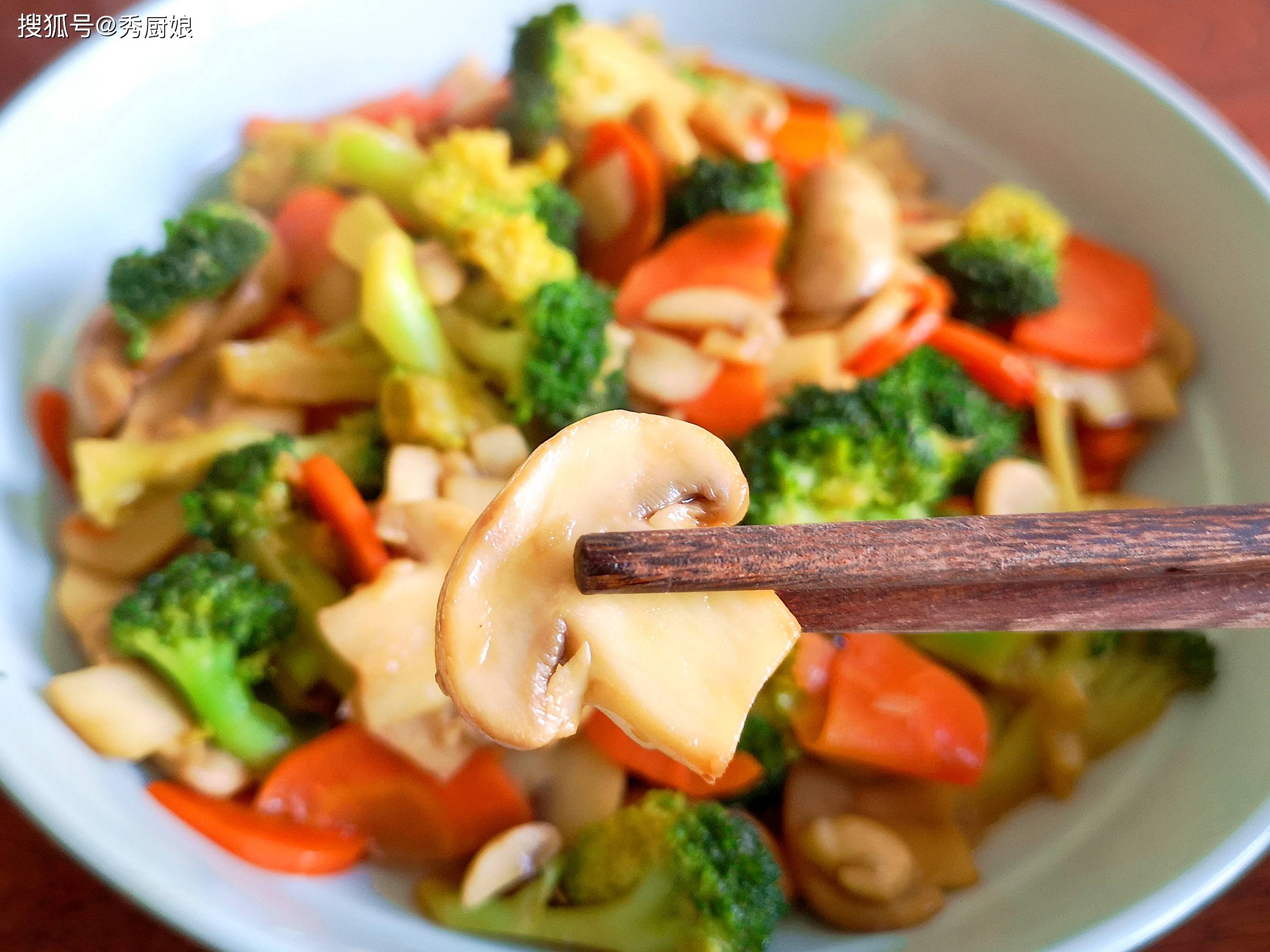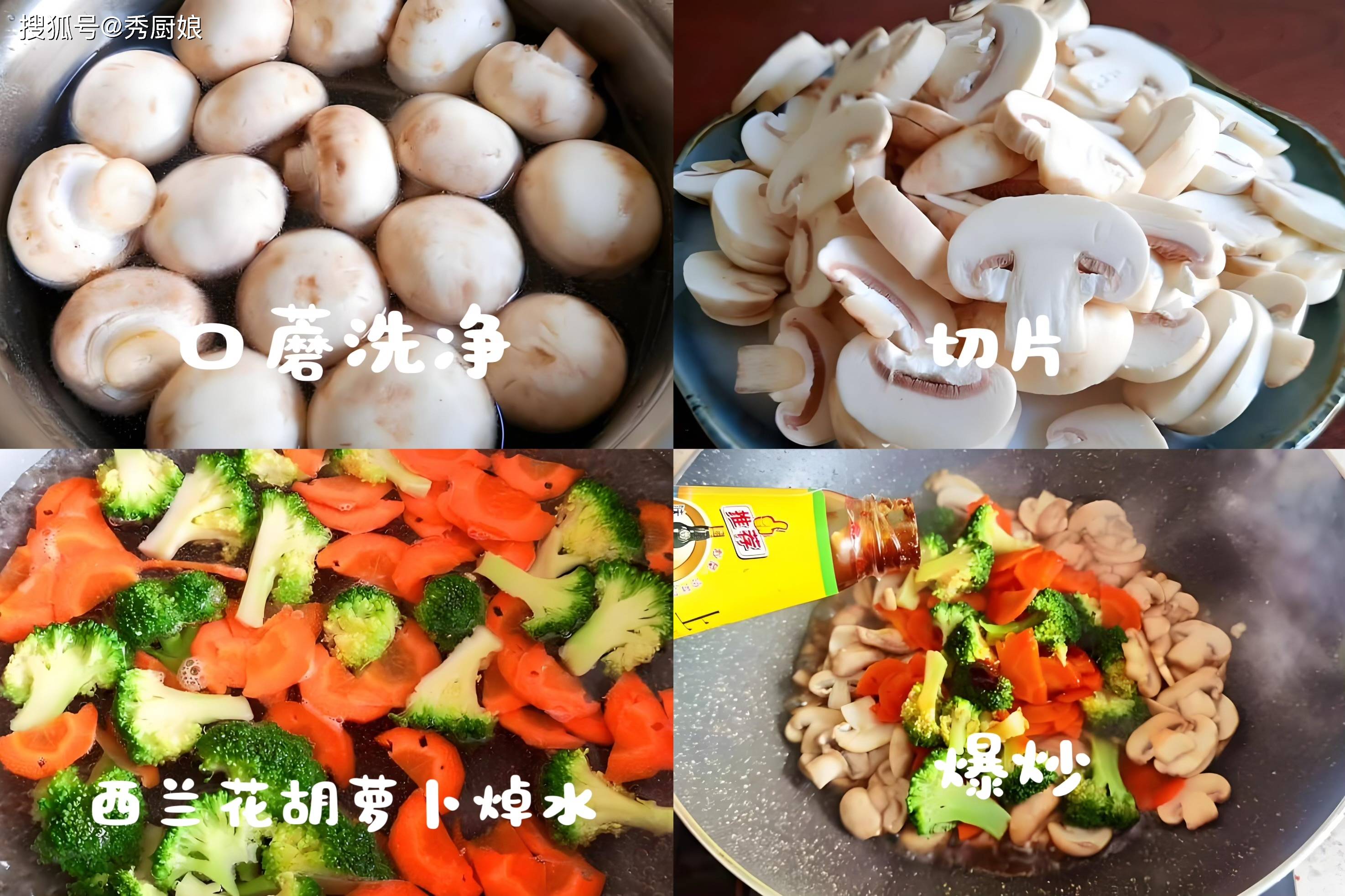 二、 西兰花胡萝卜炒口蘑:色彩缤纷,营养满分