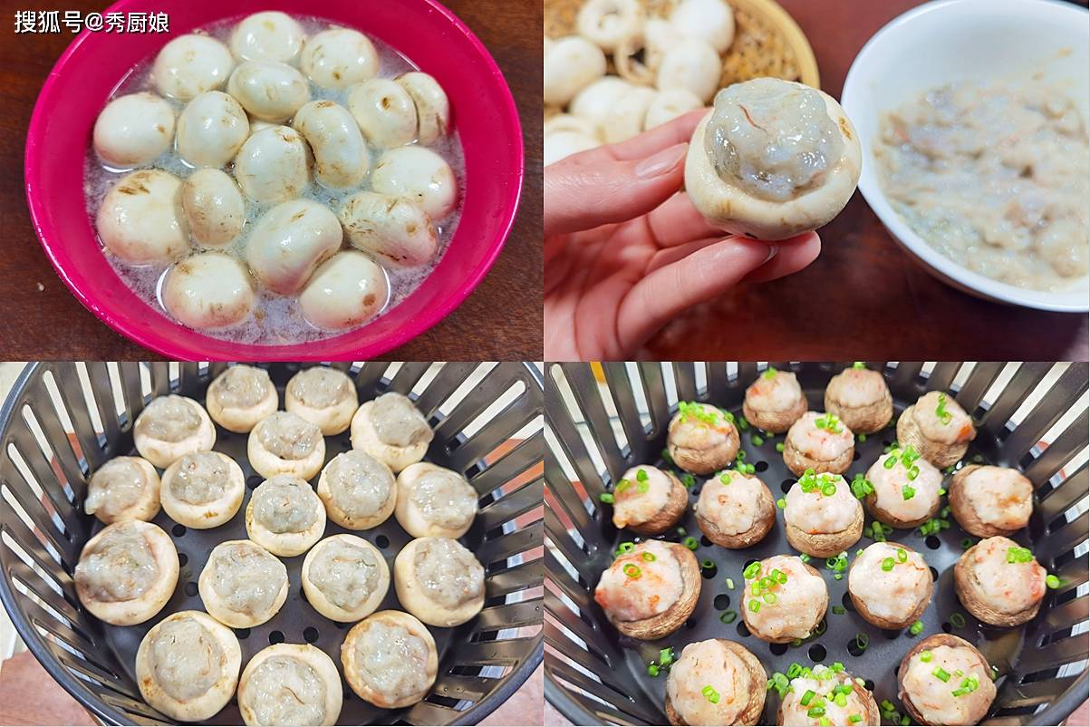 三、 鲜虾酿口蘑:高蛋白搭配,鲜美升级