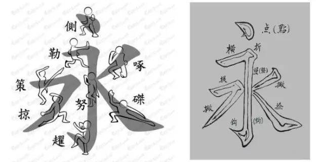 笔之执使在横画,字之立体在竖画,气之舒展在撇捺,筋之融结在纽转,脉络之不断在牵丝,骨肉之调停在饱满,趣之呈露在钩点,光之通明在分布,行之茂密在流贯,形之错落在奇正。