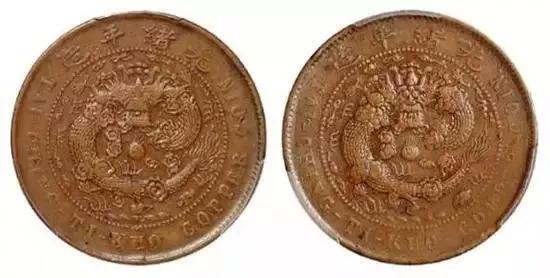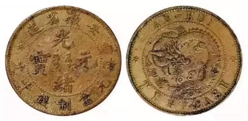 1902年,安徽省制作了光绪版元宝、十枚铜钱、梅花星和飞龙。