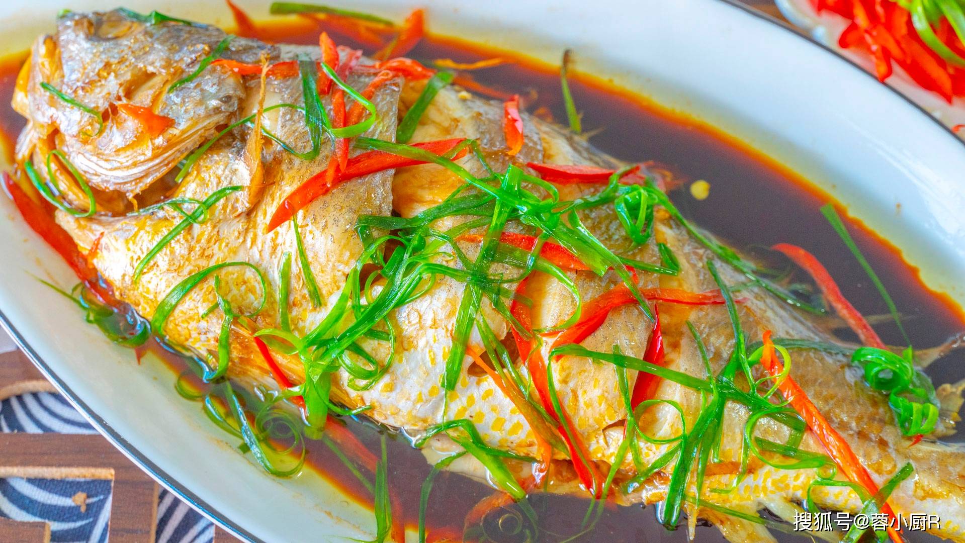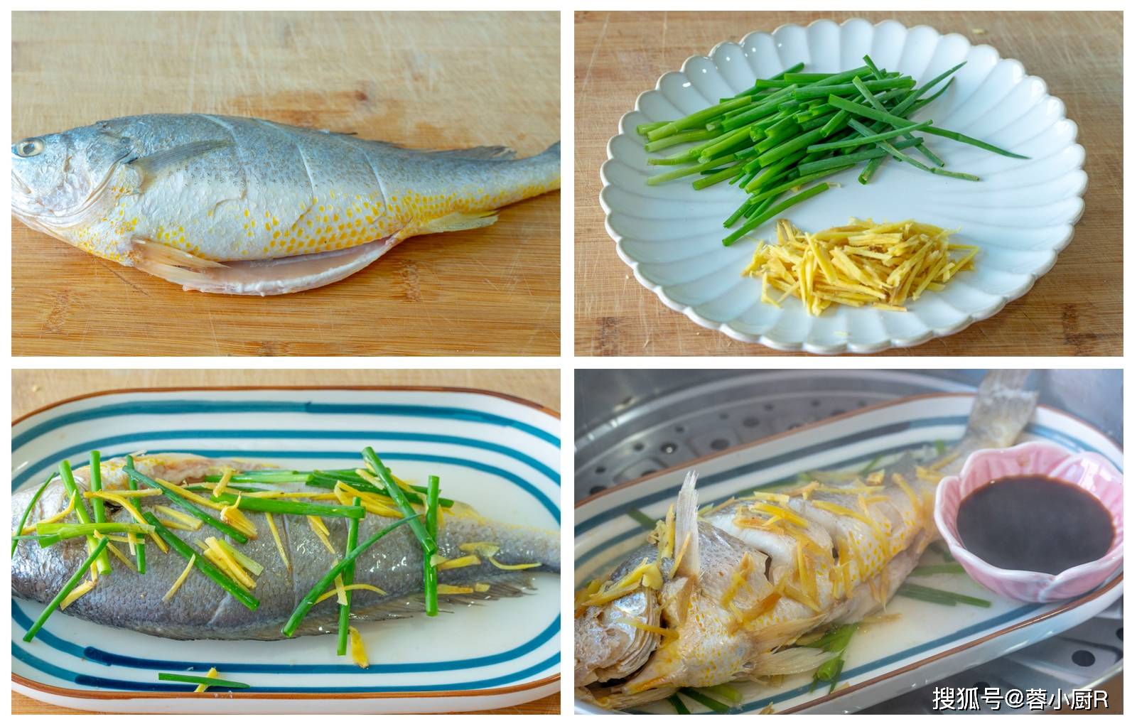 大黄花鱼、生姜、小葱、料酒、蒸鱼豉油、红辣椒