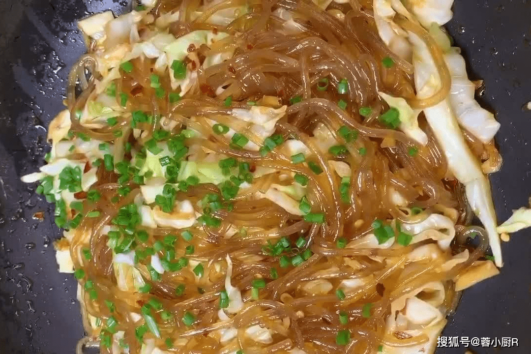 6、开中火翻炒30秒,放入葱花,翻炒均匀,即可起锅装盘。