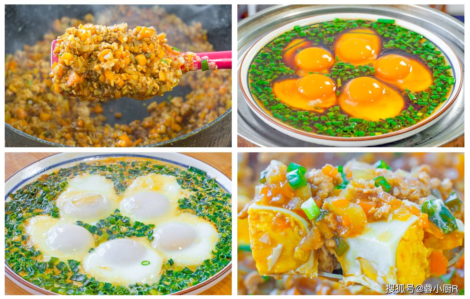 5、煮到锅里变得浓稠就可以关火了;鸡蛋蒸好了把肉沫铺上来,再来点小葱花点缀下,蒸鸡蛋就做好了。