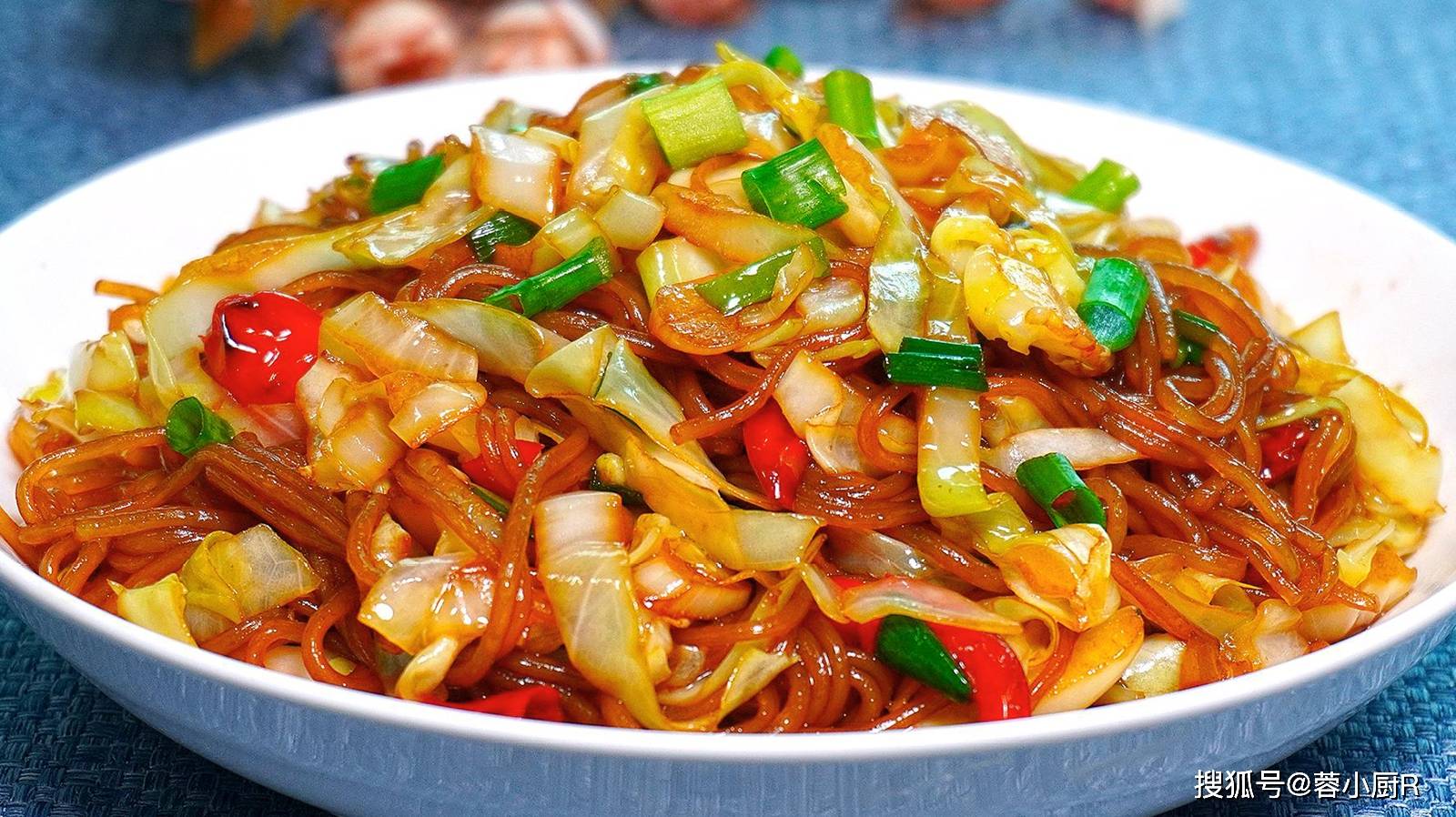 5、起锅添入少许食用油,放入肥油,炒出油脂,再放入瘦肉,把瘦肉炒香炒至变色。放入姜蒜和红干椒炒香,烹入少许料酒去腥增香。再倒入包菜丝,开大火翻炒,把包菜炒至断生,变软。再下入粉条,开始调味,加入一勺食盐,少许鸡精,一勺生抽从锅边烹入;