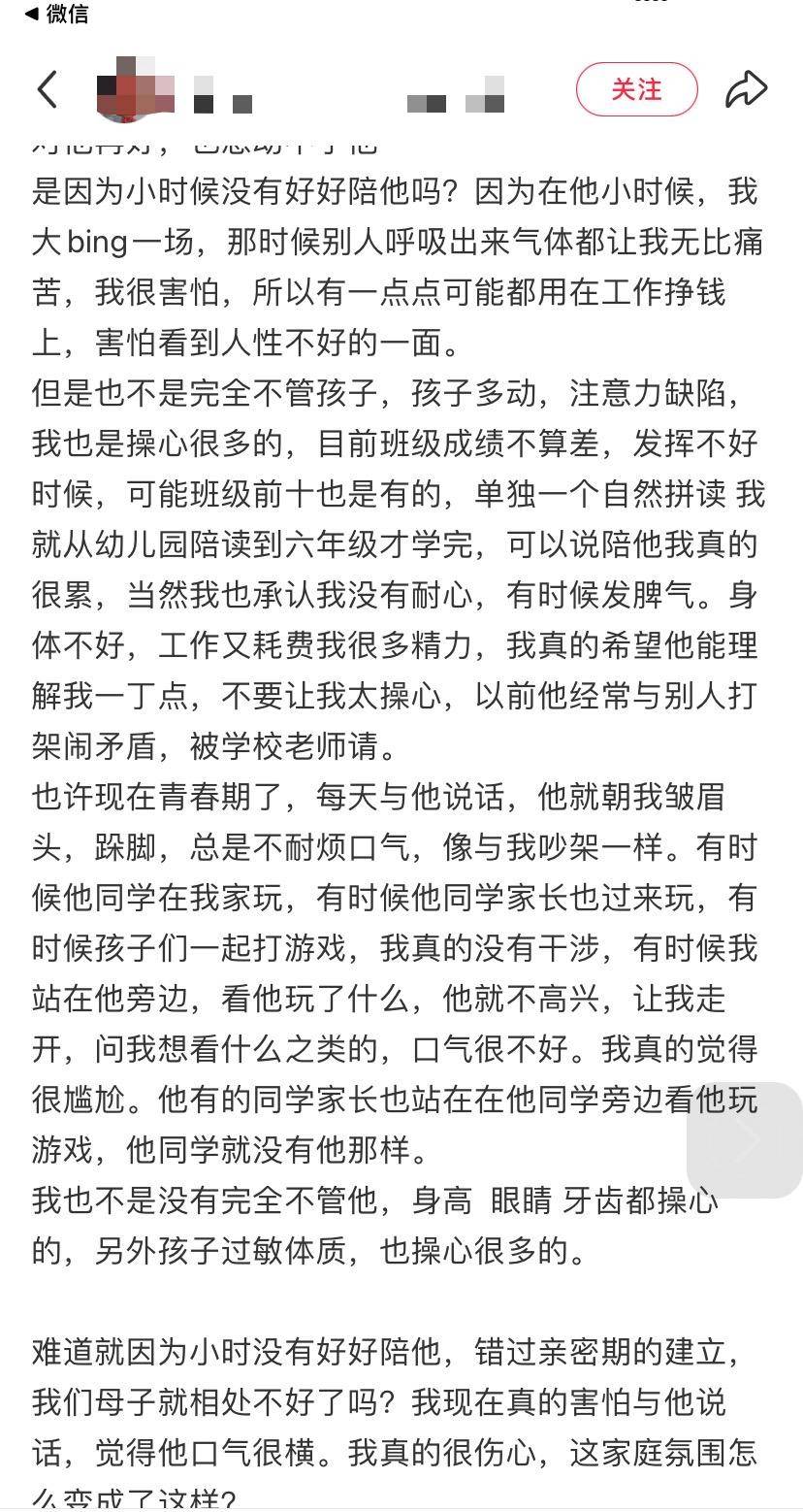 难道就因为小时我没有好好陪他,母子关系就相处不好了吗?”