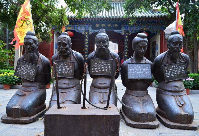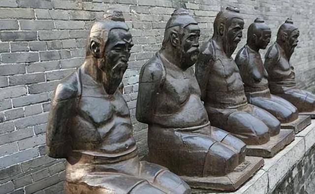 在杭州西湖边的岳王庙前常年跪着几尊铁像,面颊被人拍得发亮,那是秦桧与其同党,被铸成铁人,永世下跪。