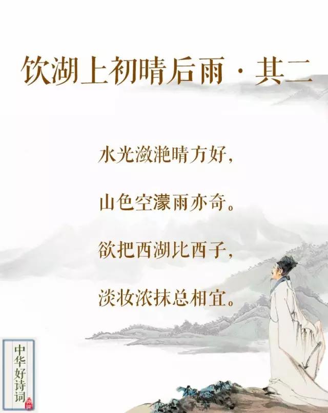 这首赞美西湖美景的七绝,写于诗人任杭州通判期间。此诗不是描写西湖的一处之景、一时之景,而是对西湖美景的全面描写概括品评,尤其是后二句,可以说是把西湖写绝了!
