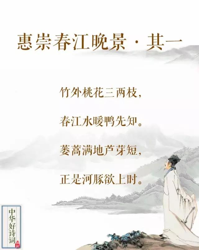 惠崇是宋朝著名的画家、僧人,即欧阳修所谓「九僧」之一。他能诗善画,特别是画鹅、雁、鹭鸶、小景尤为拿手。《春江晚景》是他的名作。