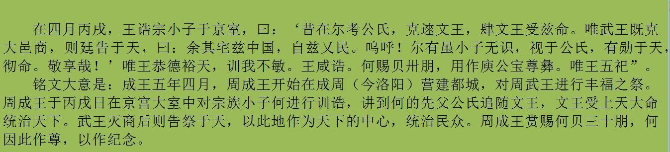 何尊内的铭文如下: