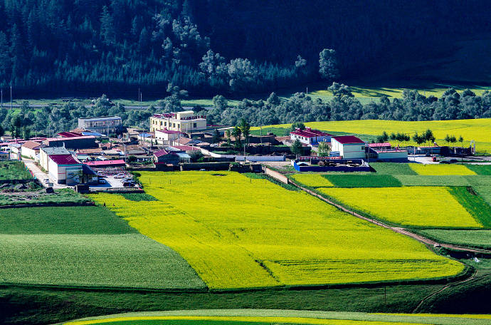 “祁连”系匈奴语,匈奴呼天为“祁连”,祁连山即“天山”之意。祁连的四季从来都是不分明的,春不像春,夏不像夏,“祁连六月雪”就是祁连气候和自然景观的写照,也正因为如此,祁连的夏季便分外迷人,尤其是立夏之后七、八月间,山林似一望无际的绿色海洋,大地一片金黄色的花海,在高原特有的蓝天白云之下,呈现出清新和谐的动人画卷。