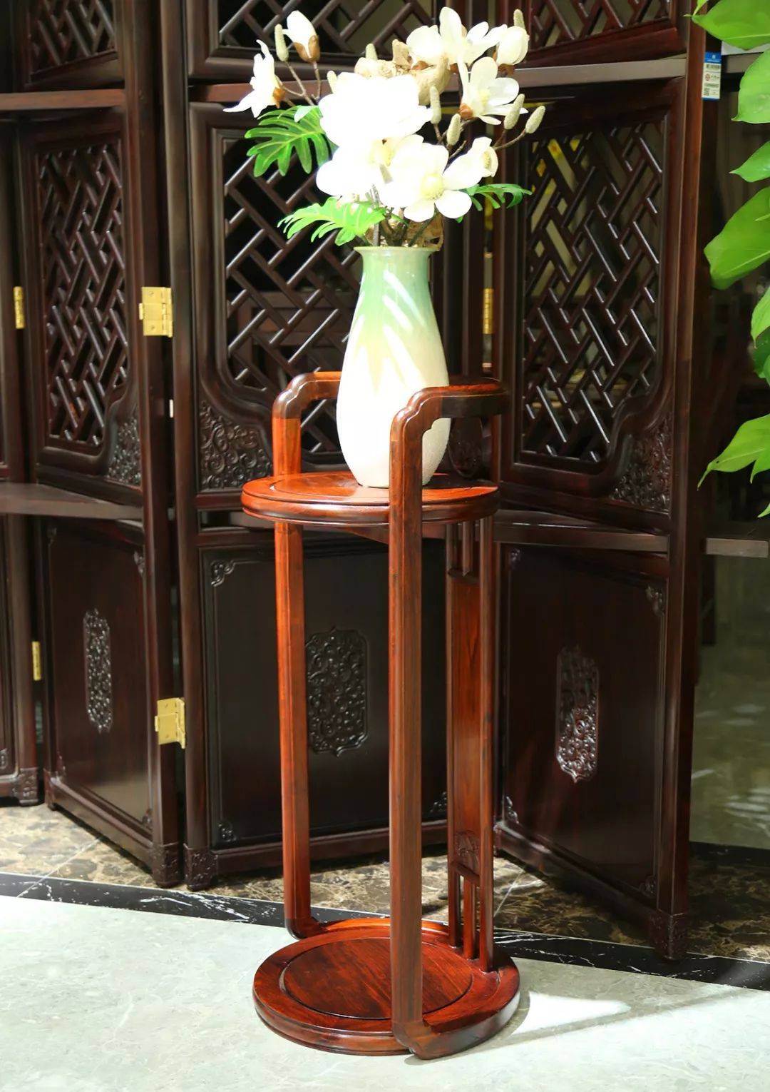 一方花几,细致足脚。常常置身于客厅、走廊、转角等不显眼处。静静站立,淡露芬芳,不多一分繁复,不少一丝精致。