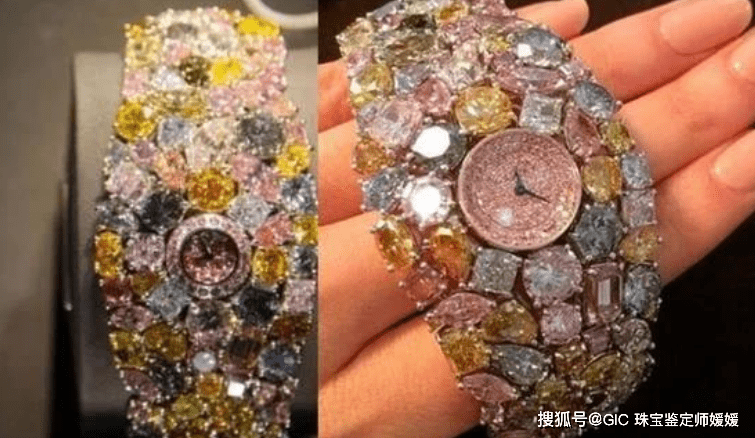 这款七彩缤纷,像绣花球一样镶满各种钻石的手表,是格拉夫一个系列手表。手表上的钻石总重量是110克拉,镶了至少上百颗钻石,有粉、蓝、白、黄等等各种颜色,十分梦幻。这个手表看起来十分奢华,尺寸超过一般的钻石,远看就像一个手镯。设计这么特别的手表,价值5500万美金(相当于人民币3.8亿),是世界上最为昂贵的手表之一。这款手表精彩绝伦异常闪烁的宝石光,不愧为出自大师之手。